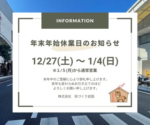 【年末年始営業のお知らせ】新年は2026年1月5日(月)よりスタート!